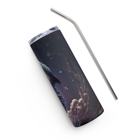 Celestial Owl Stainless steel tumbler cup with metal straw