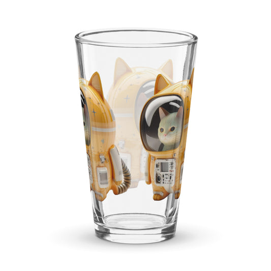 Handmade Astronaut Space Kitty Cat 16oz. Shaker Beer pint glass Cup