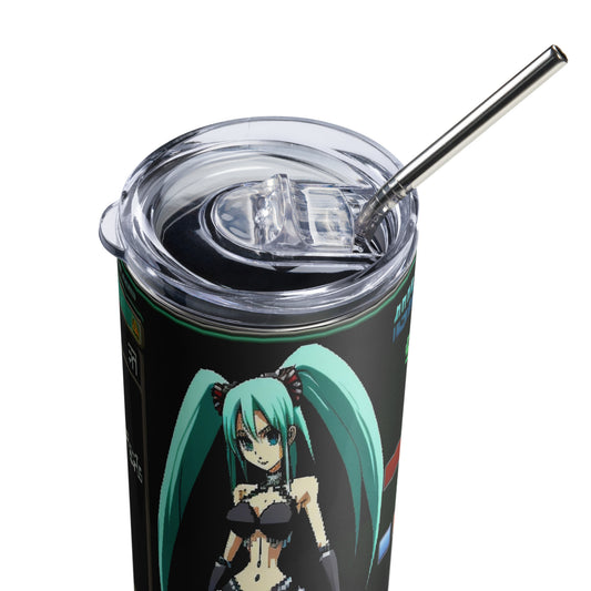 Hatsune Miku video game screen Stainless steel tumbler cup with metal straw