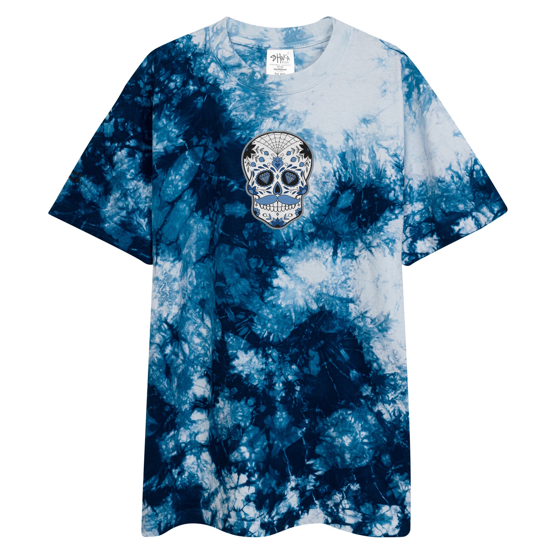 Mustache Sugar skull Embroidered Oversized tie-dye t-shirt