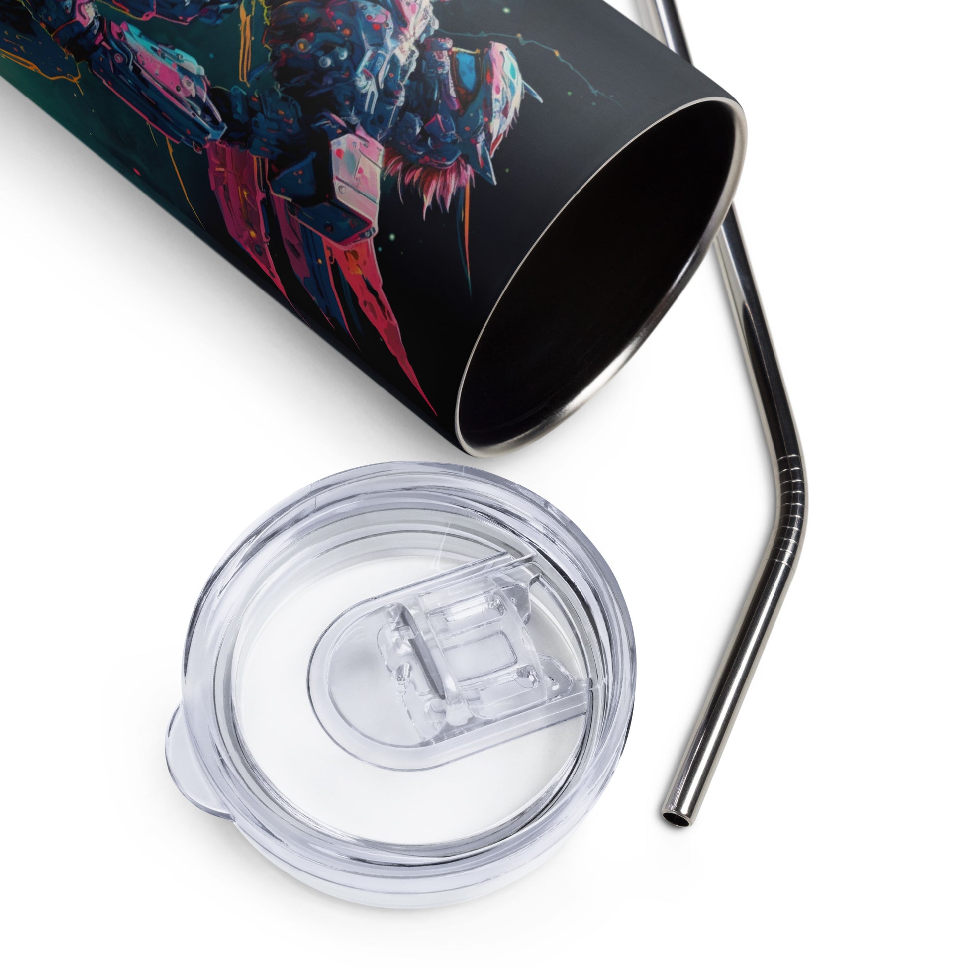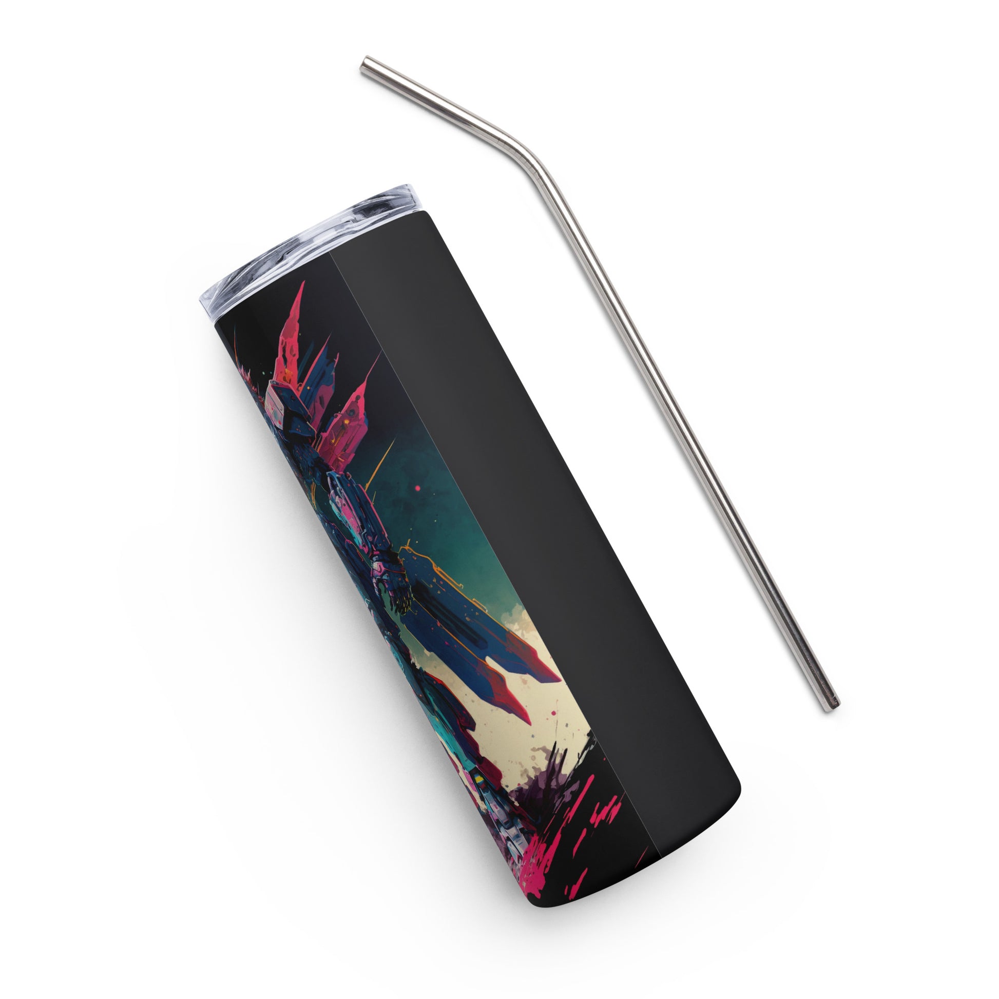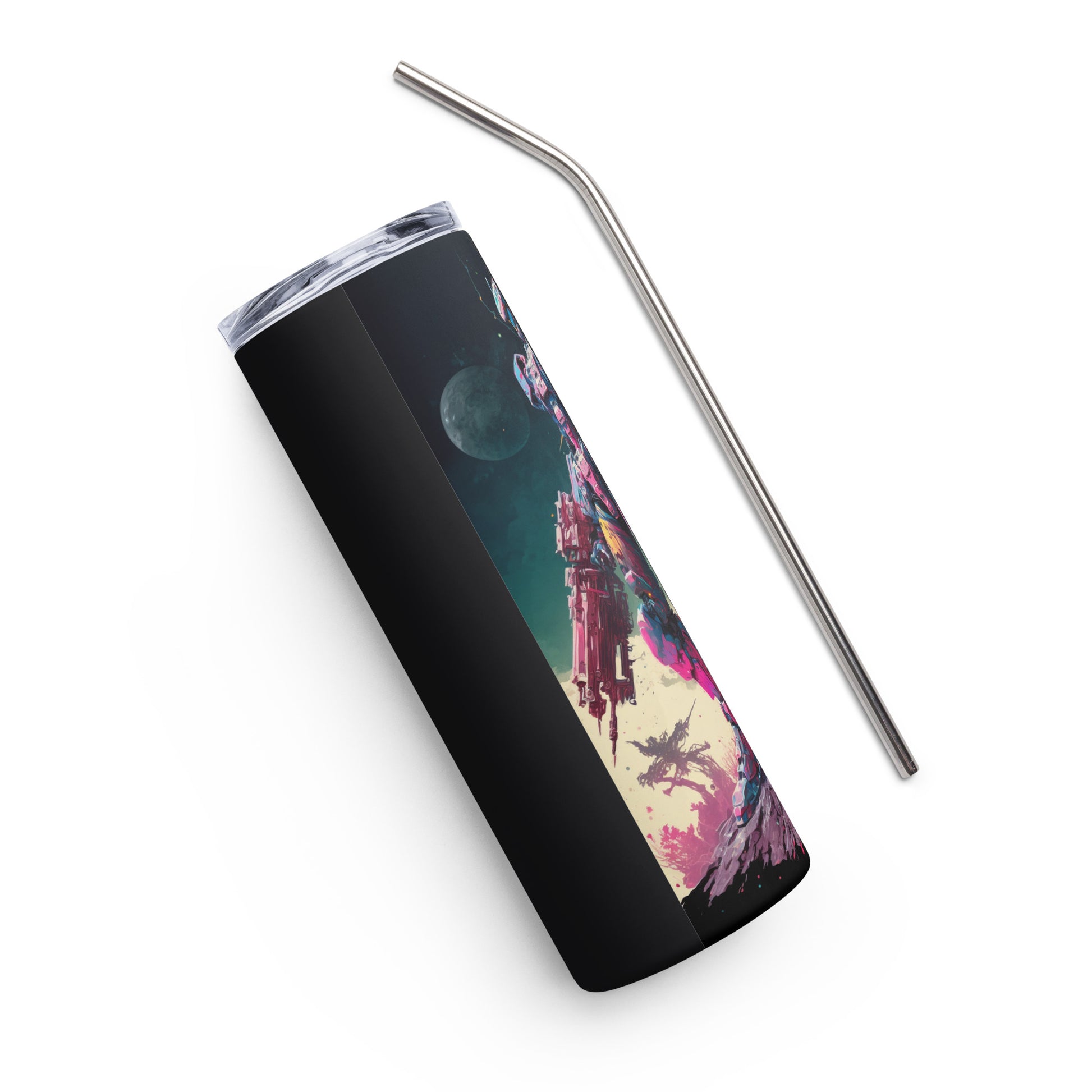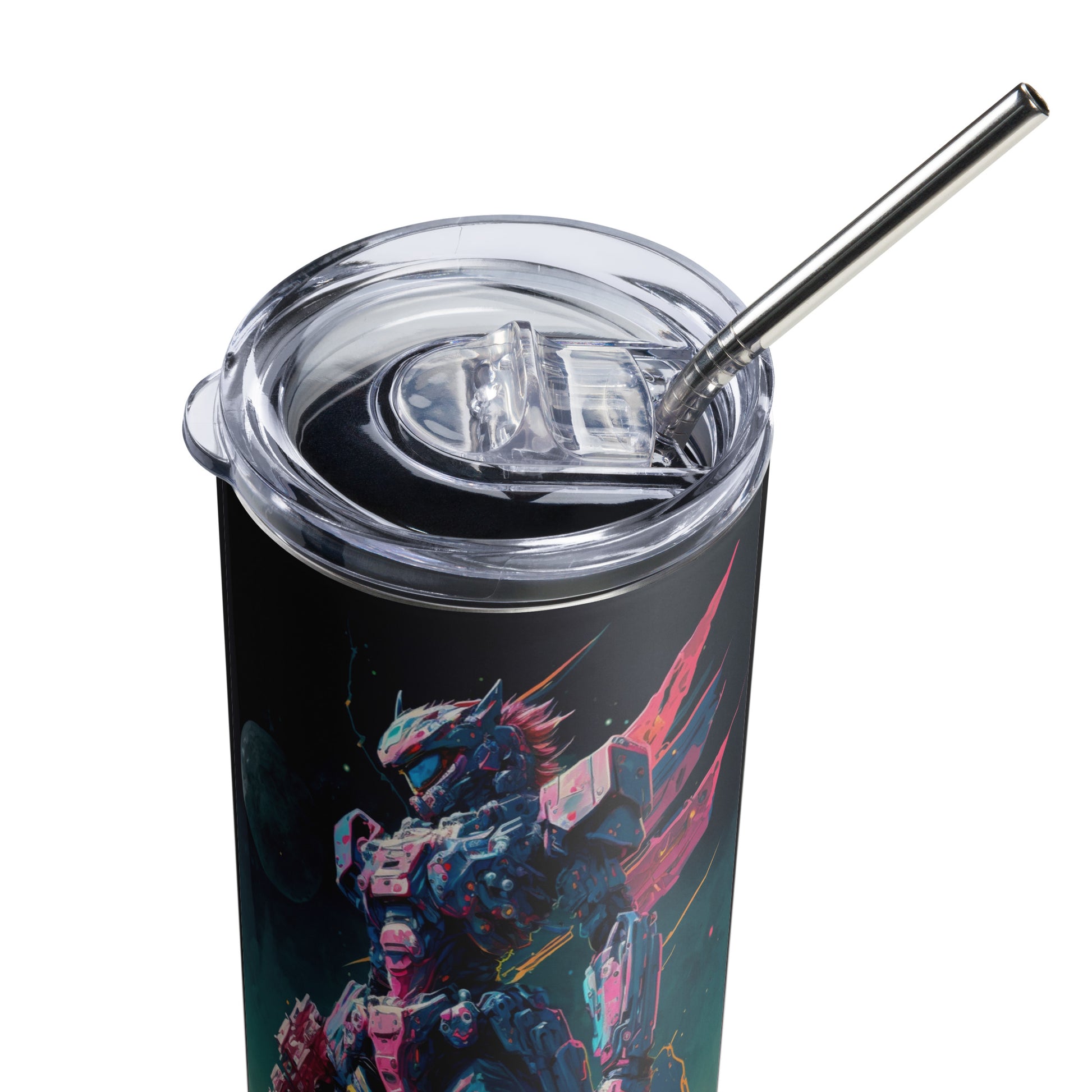 Space Robot #2 Stainless steel tumbler cup with metal straw