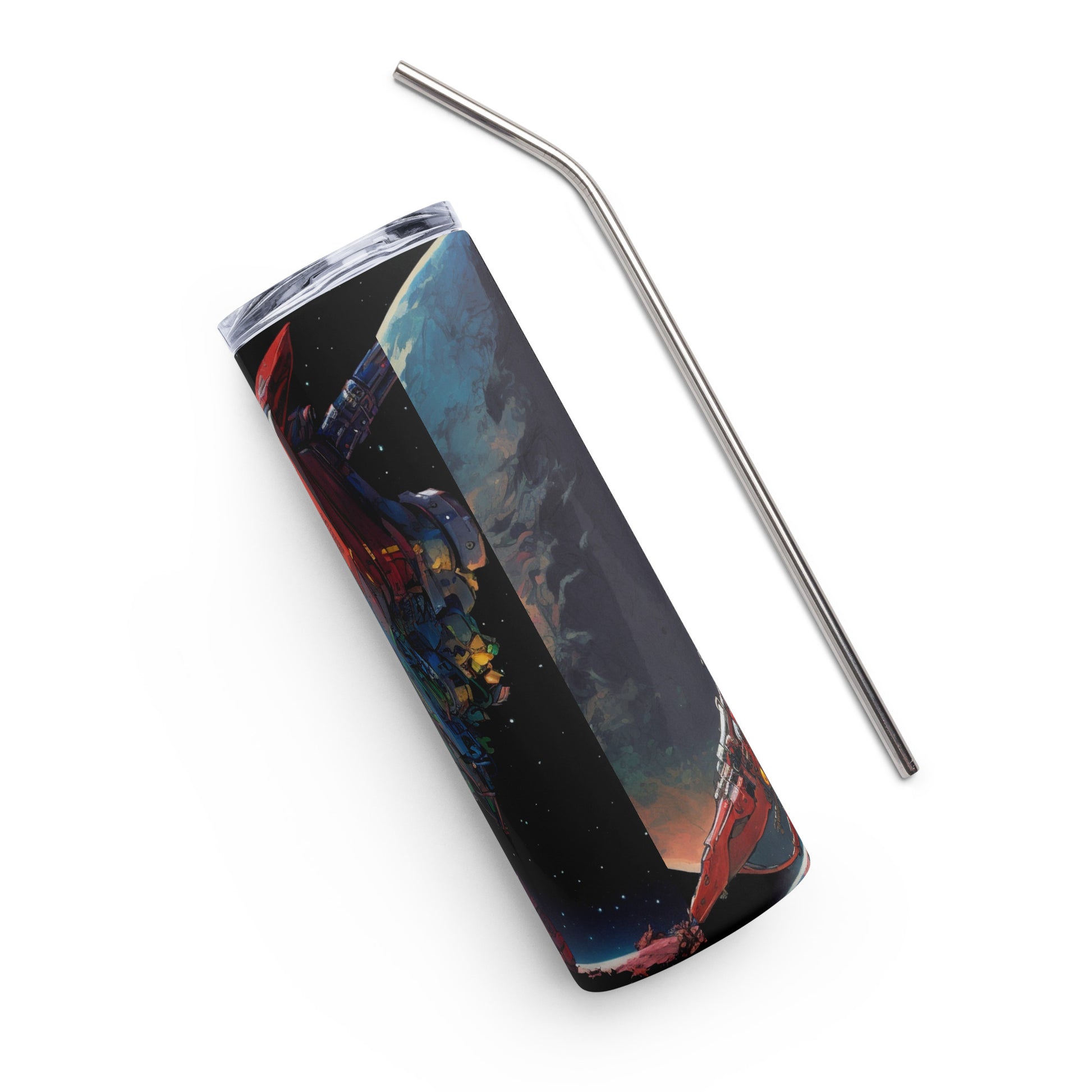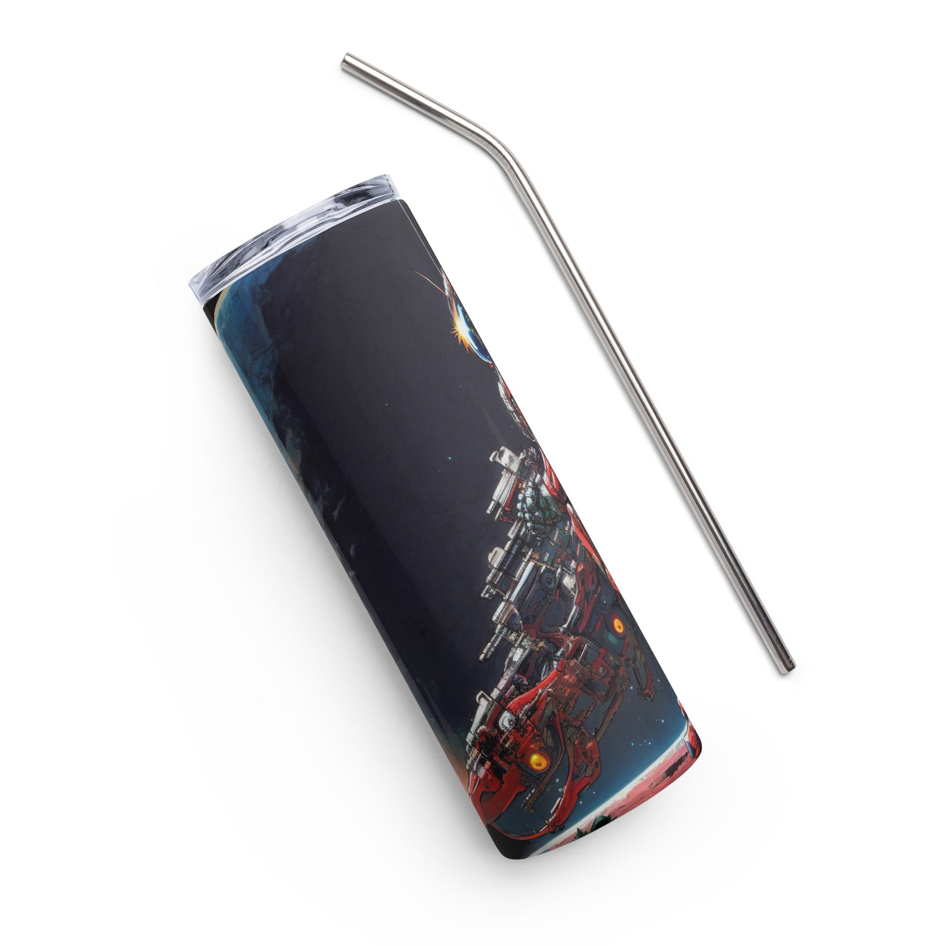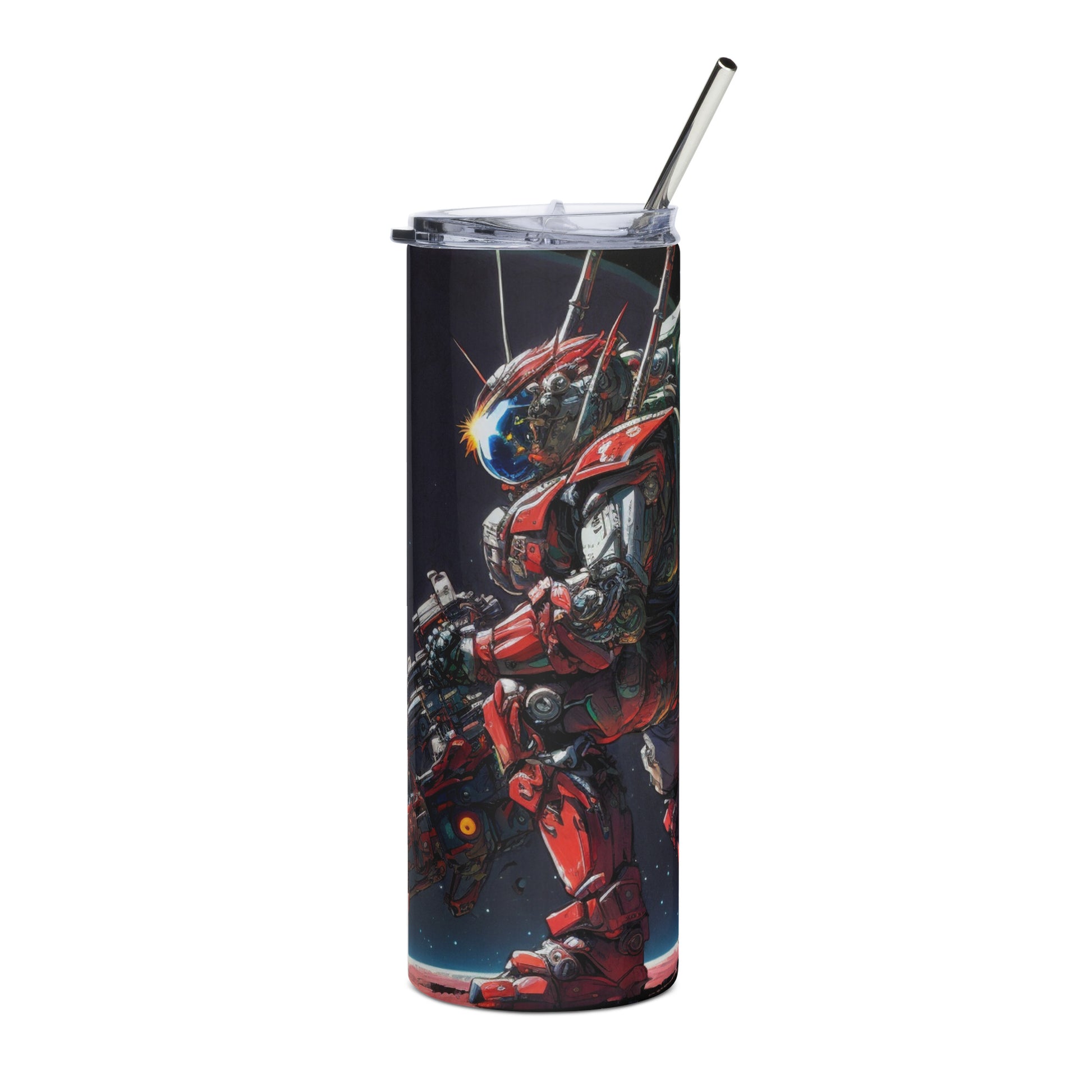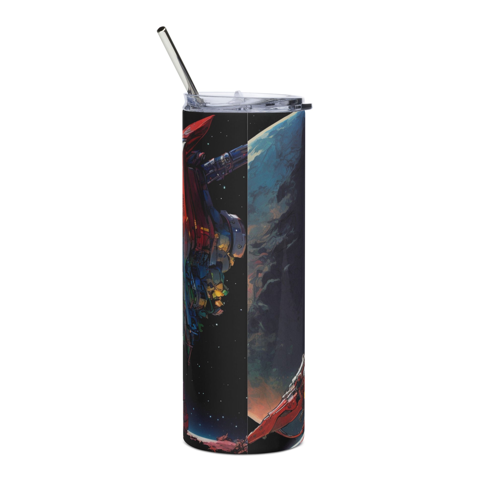 Space Robot #8 Stainless steel tumbler with metal straw