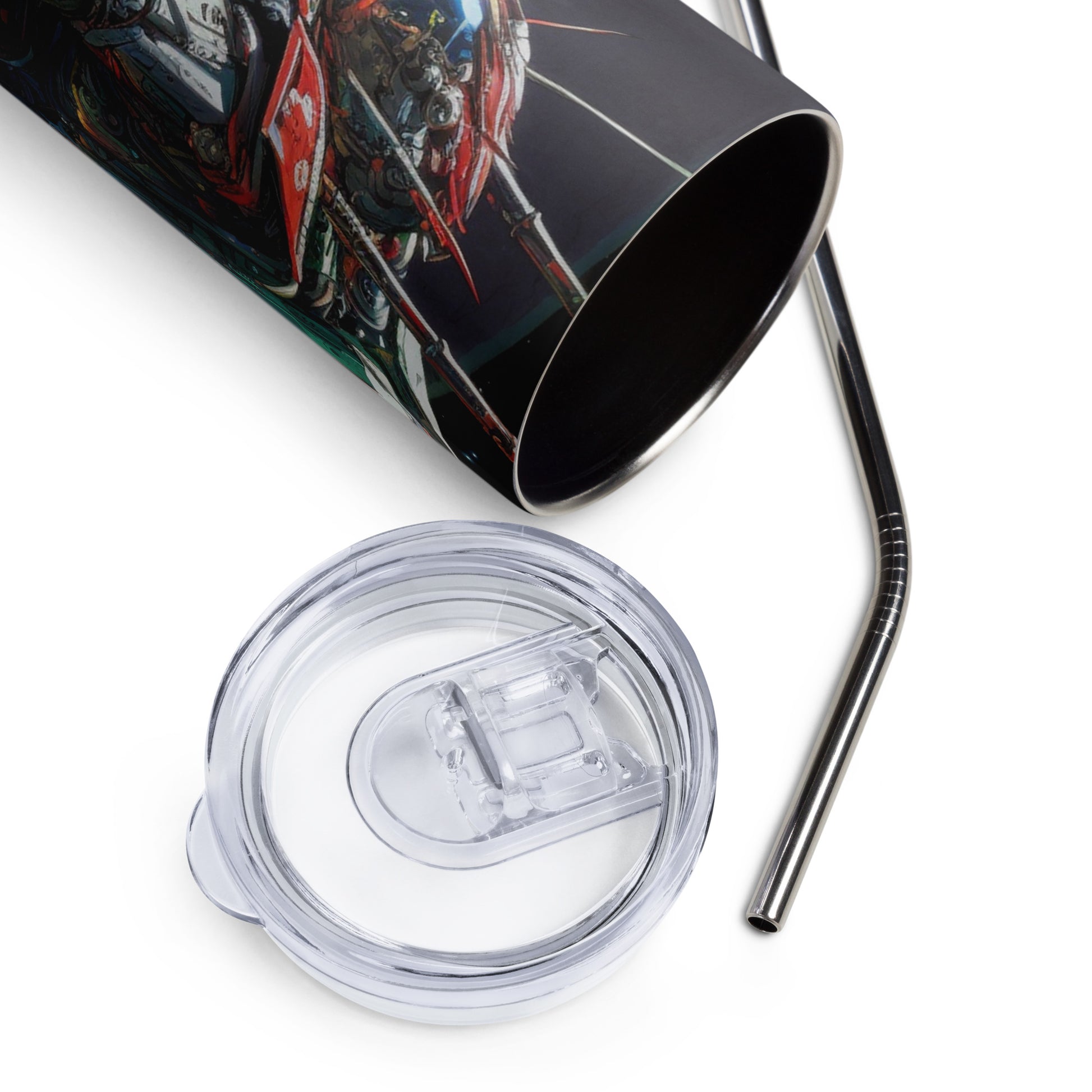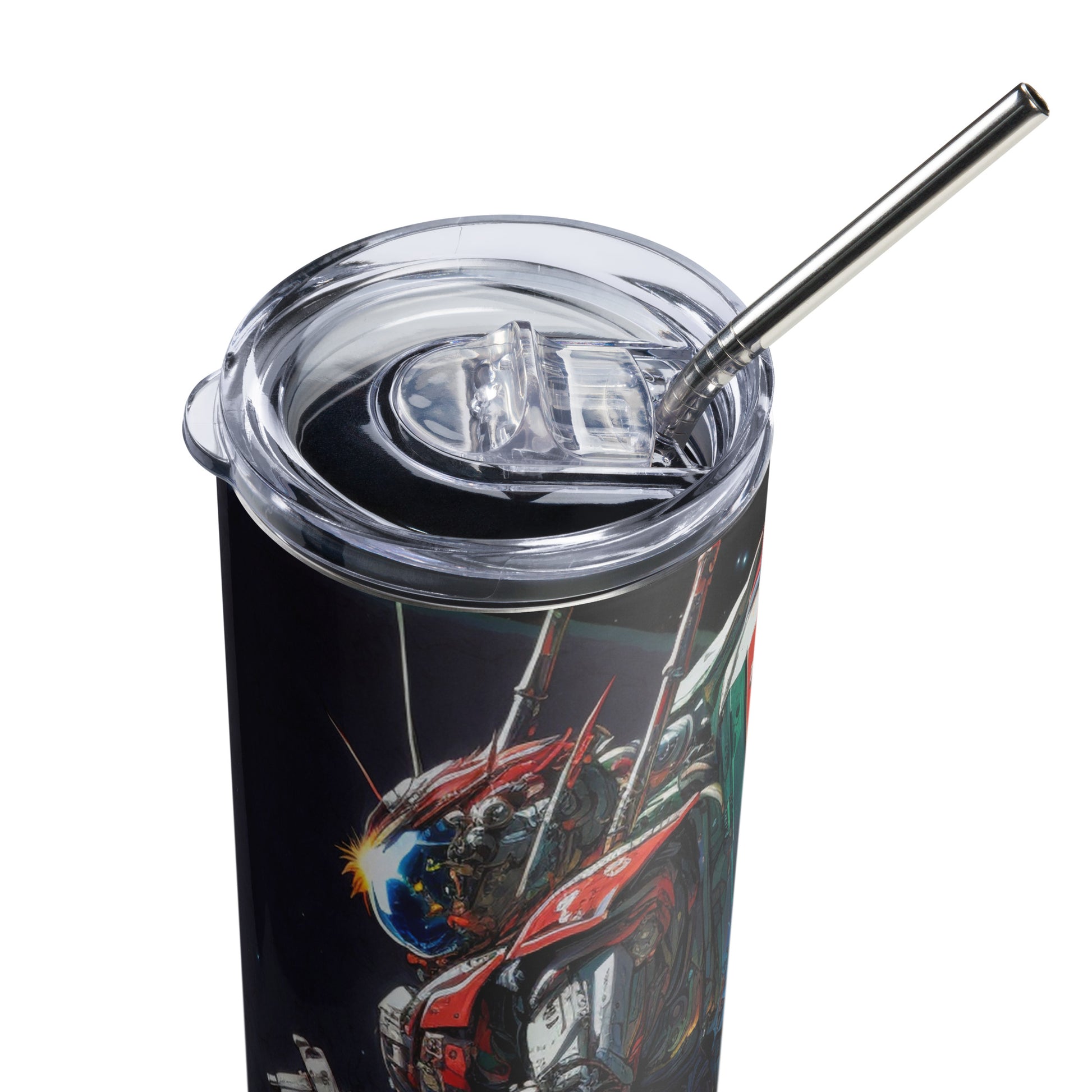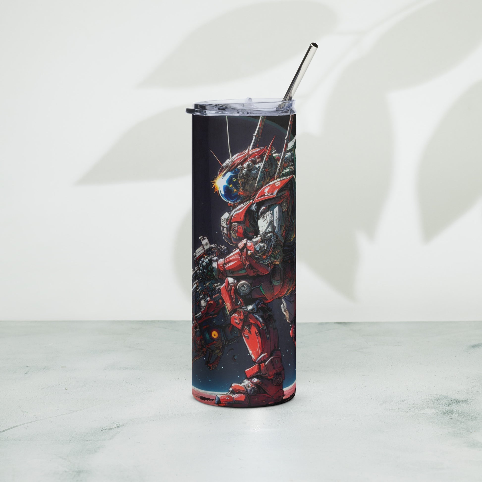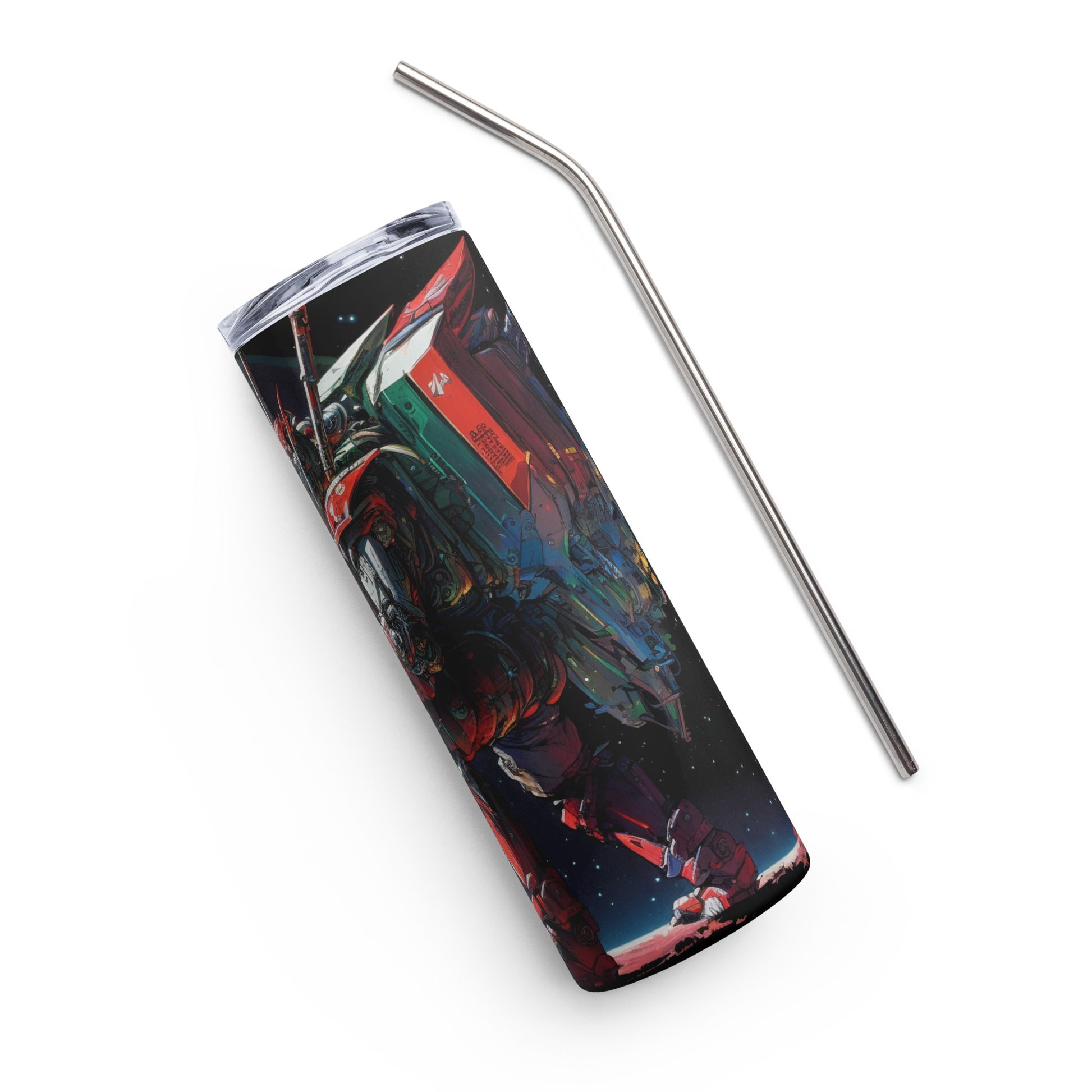 Space Robot #8 Stainless steel tumbler with metal straw