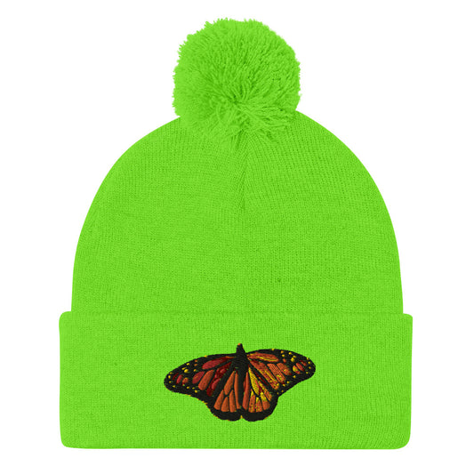 Monarch Butterfly Pom-Pom Beanie Hat