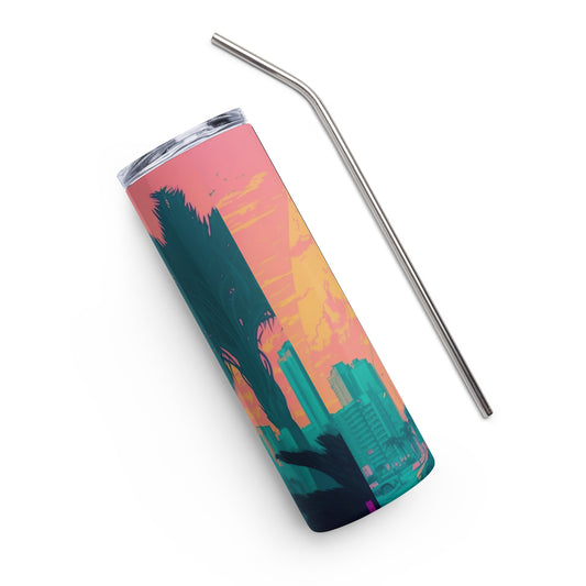 Miami Vice Cheetah #3 Stainless steel tumbler cup with metal straw