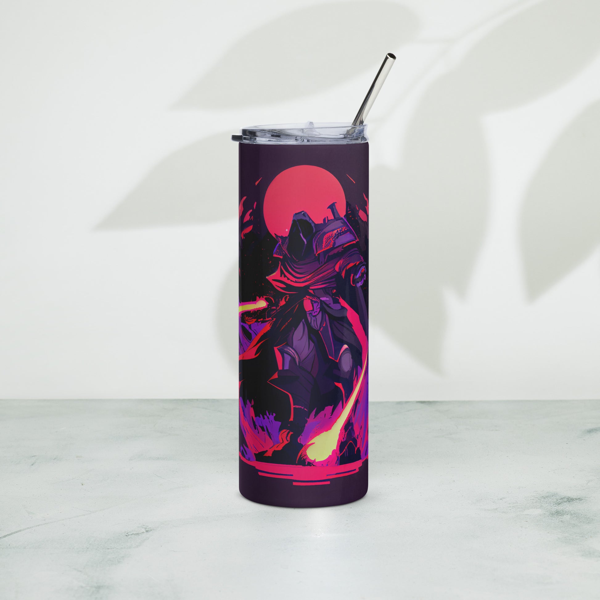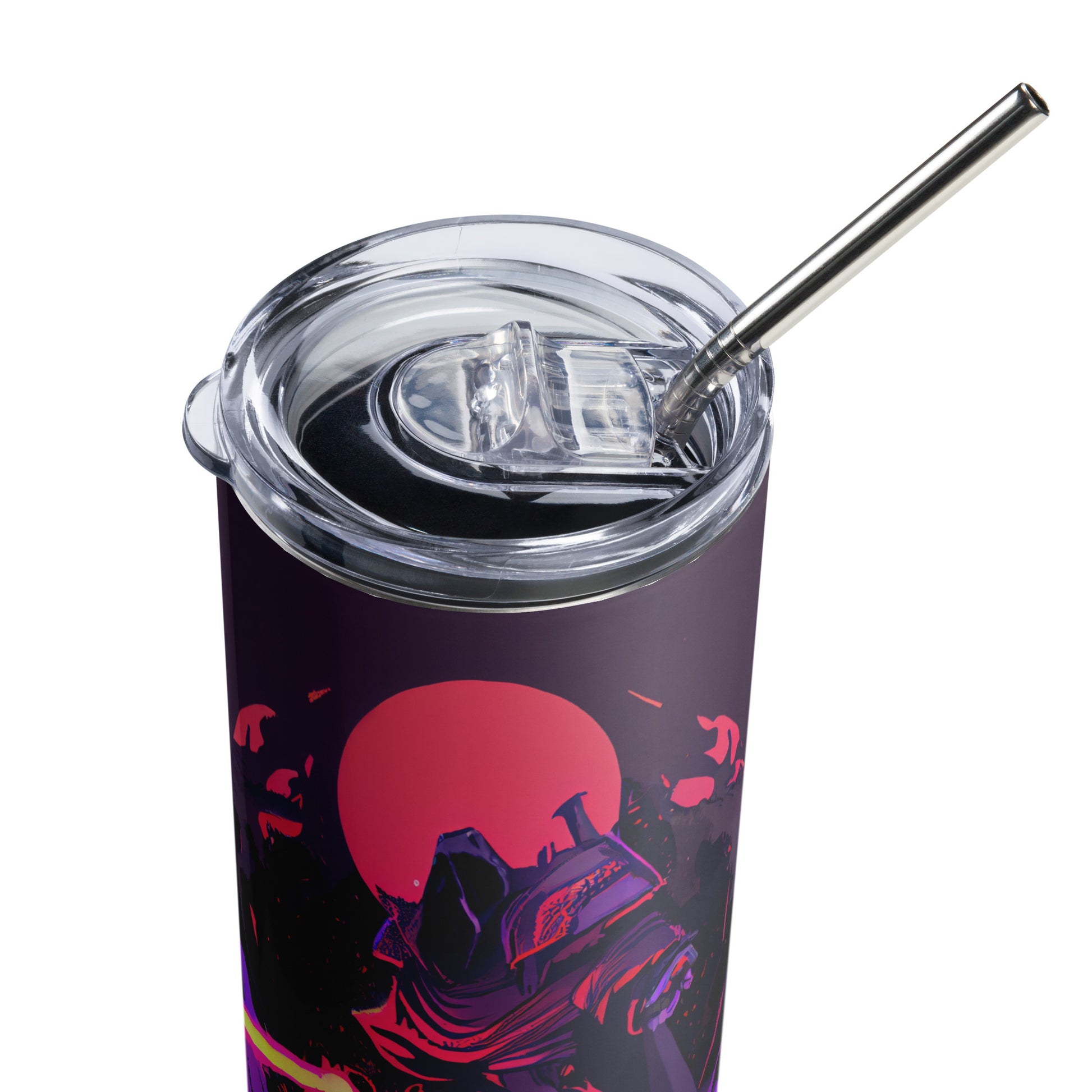 Samurai Knight Stainless steel tumbler cup with metal straw