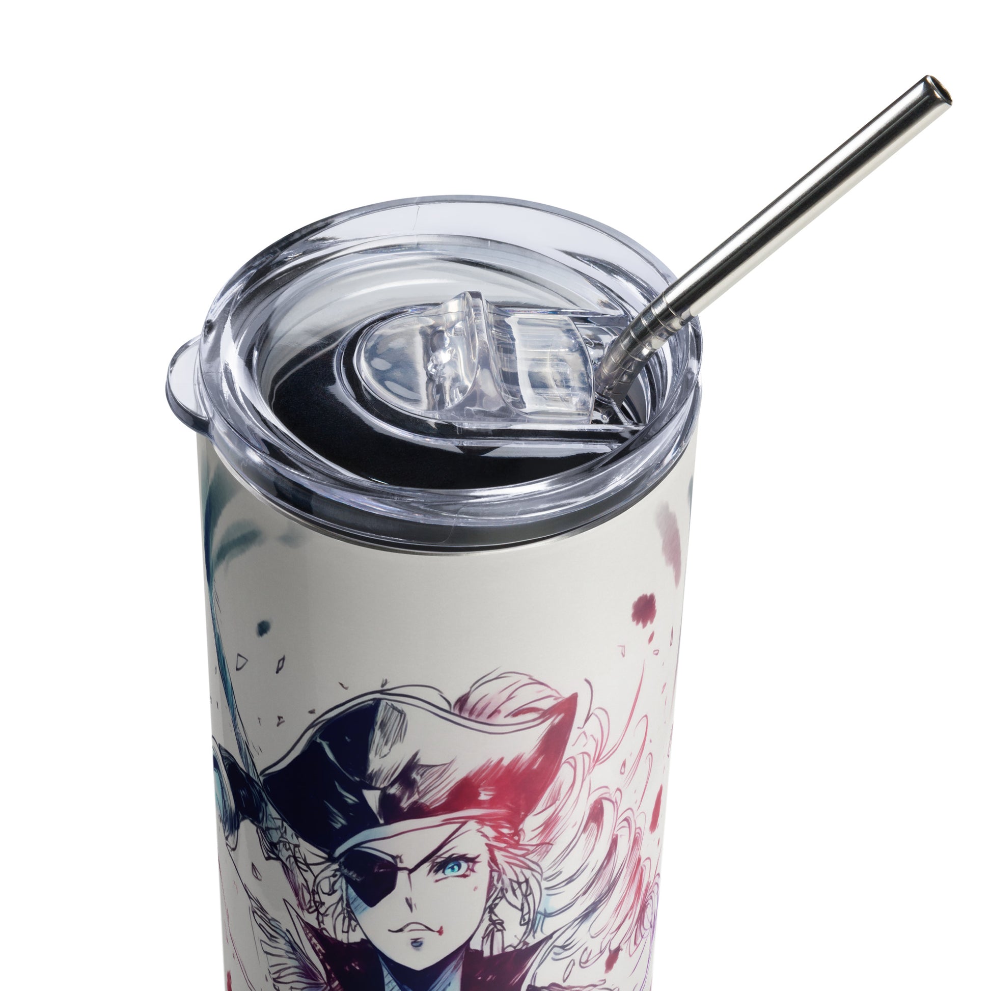 Sexy Pirate Woman Stainless steel tumbler cup with metal straw