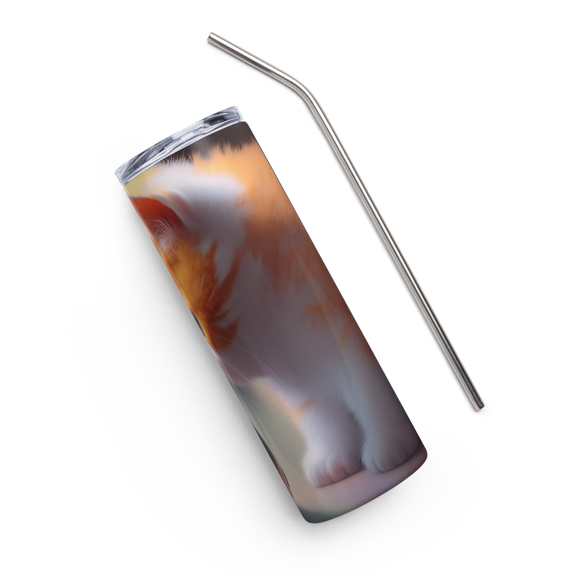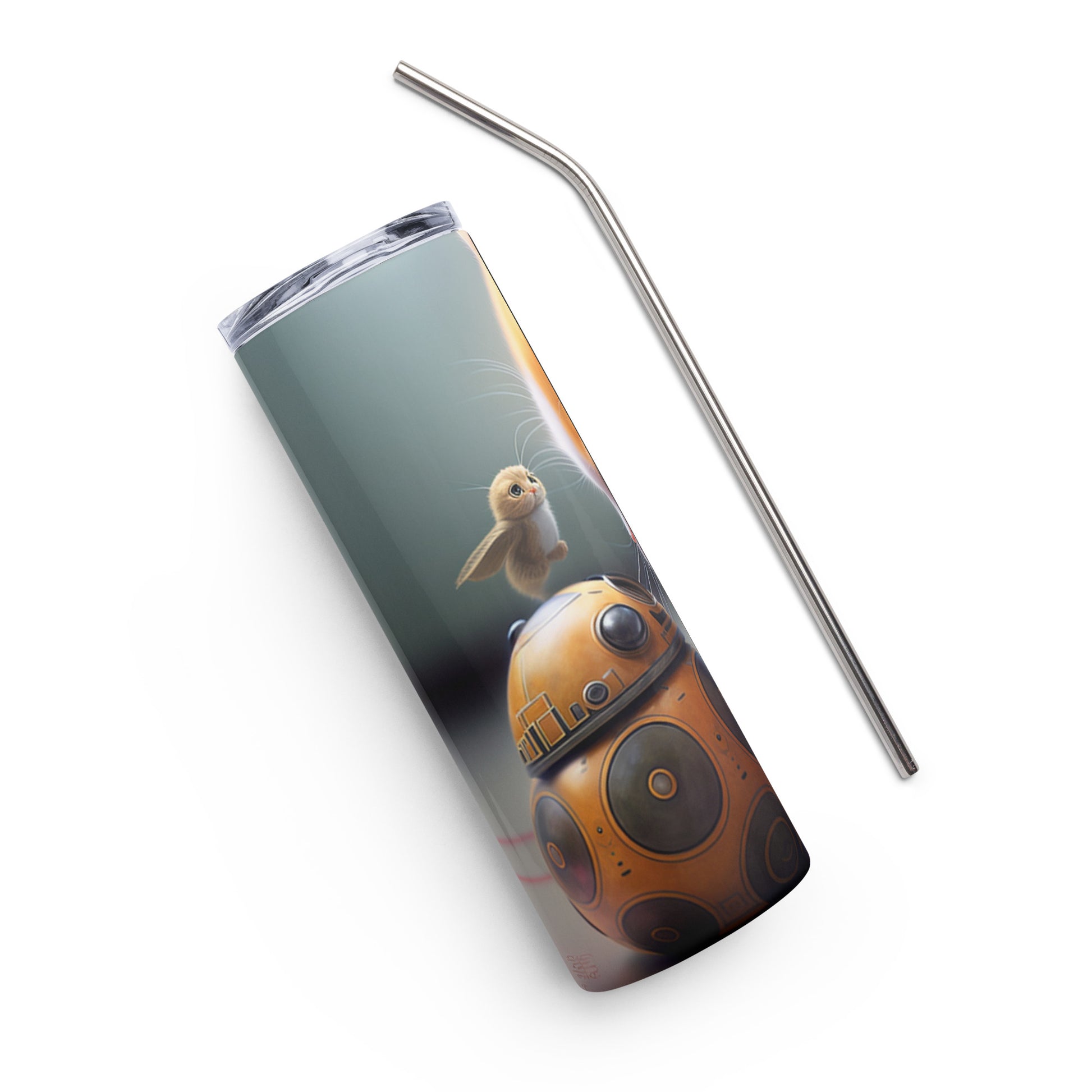 A Kitten and his Droid Stainless steel tumbler cup with metal straw star wars