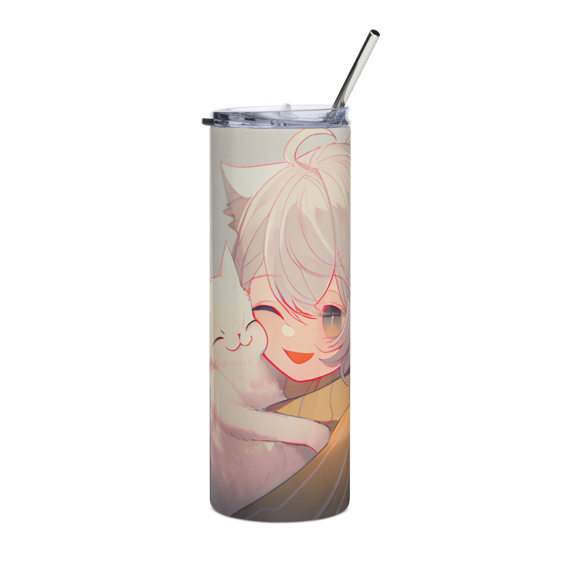 Anime Cat Girl #3 Stainless steel tumbler cup with metal straw