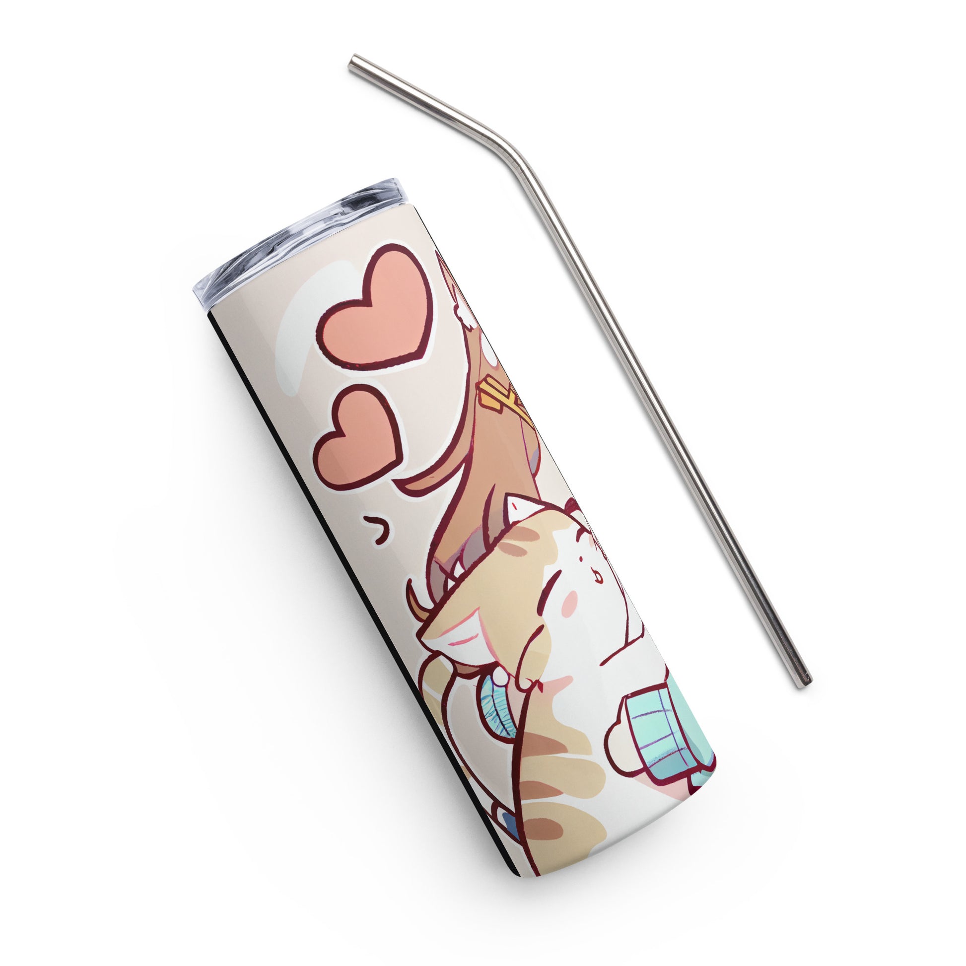 Anime Cat Girl #4 Stainless steel tumbler cup with metal straw