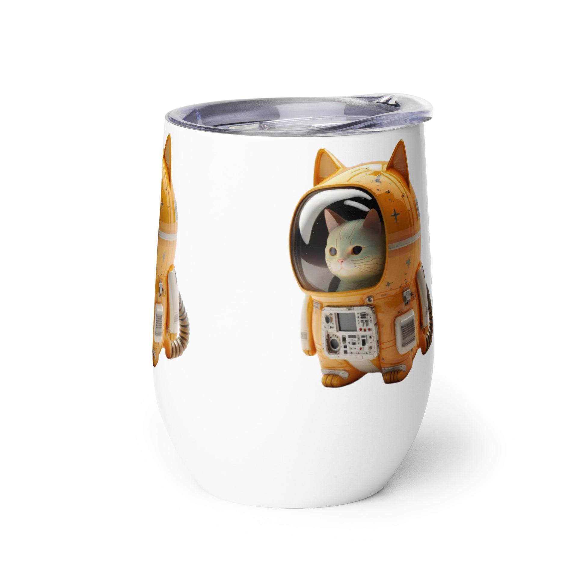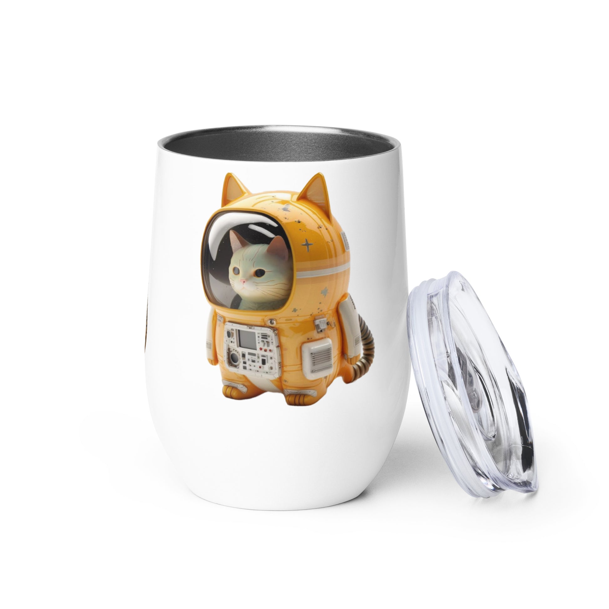 Astronaut Space Kitty Cat 12oz Stainless Steel Wine tumbler Cup