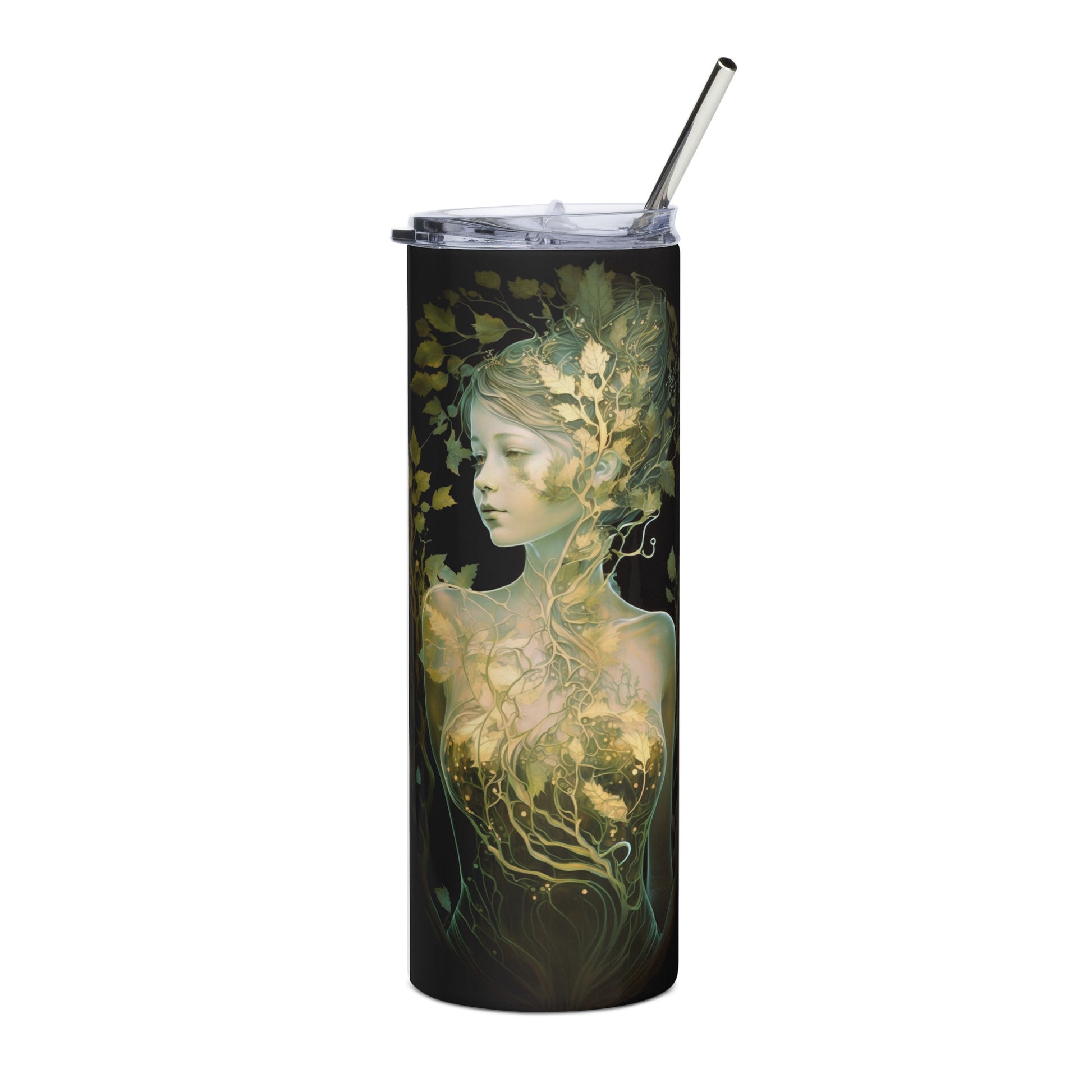 Earth Goddess #3 Stainless steel tumbler cup with metal straw